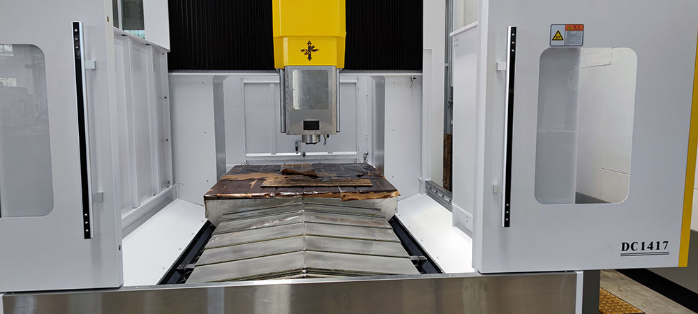 KAIBOCNC-DC1417數(shù)控龍門銑是凱博數(shù)控專門為大尺寸、高重量的模具設(shè)計生產(chǎn)的,該機傳動平穩(wěn)、剛性高、機身重、行程大,能滿足市場上大部分的模具生產(chǎn)要求。標配BT40機械主軸,也可選配更重切削的BT50主軸。