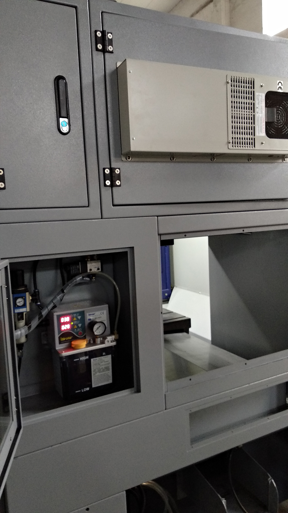 石墨機專用數控雕銑機是在數控雕銑機基礎上改造而來的,整機全密封,防塵措施做到極致,避免機床配件、電子原件及環境遭到石墨粉塵腐蝕和污染。我公司采用自主研發的水簾式除塵裝置(發明專利號:ZL200710068794.5),水簾除塵裝置加裝在機床主軸上,加工時在主軸加工區構成圓型水簾瀑布,隔絕粉塵的飛出。特點:濕切加工、內設主軸水簾除塵、整機密封保護、三軸雙伸縮護罩、石墨專用過濾系統。
